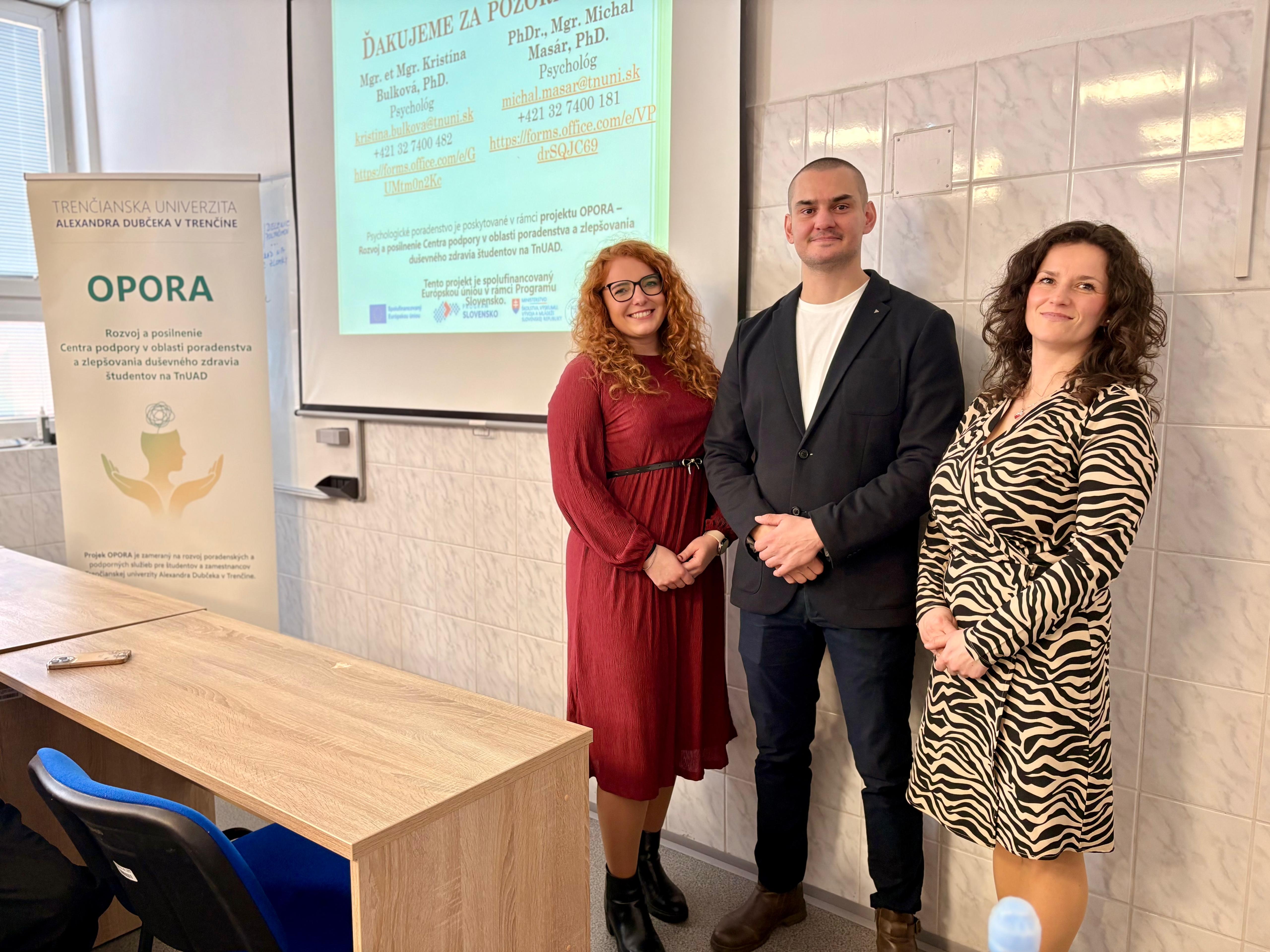 Rozvoj Centra podpory Trenčianskej univerzity je realizovaný v rámci projektu OPORA – Rozvoj a posilnenie Centra podpory v oblasti poradenstva a zlepšovania duševného zdravia študentov na TnUAD.
