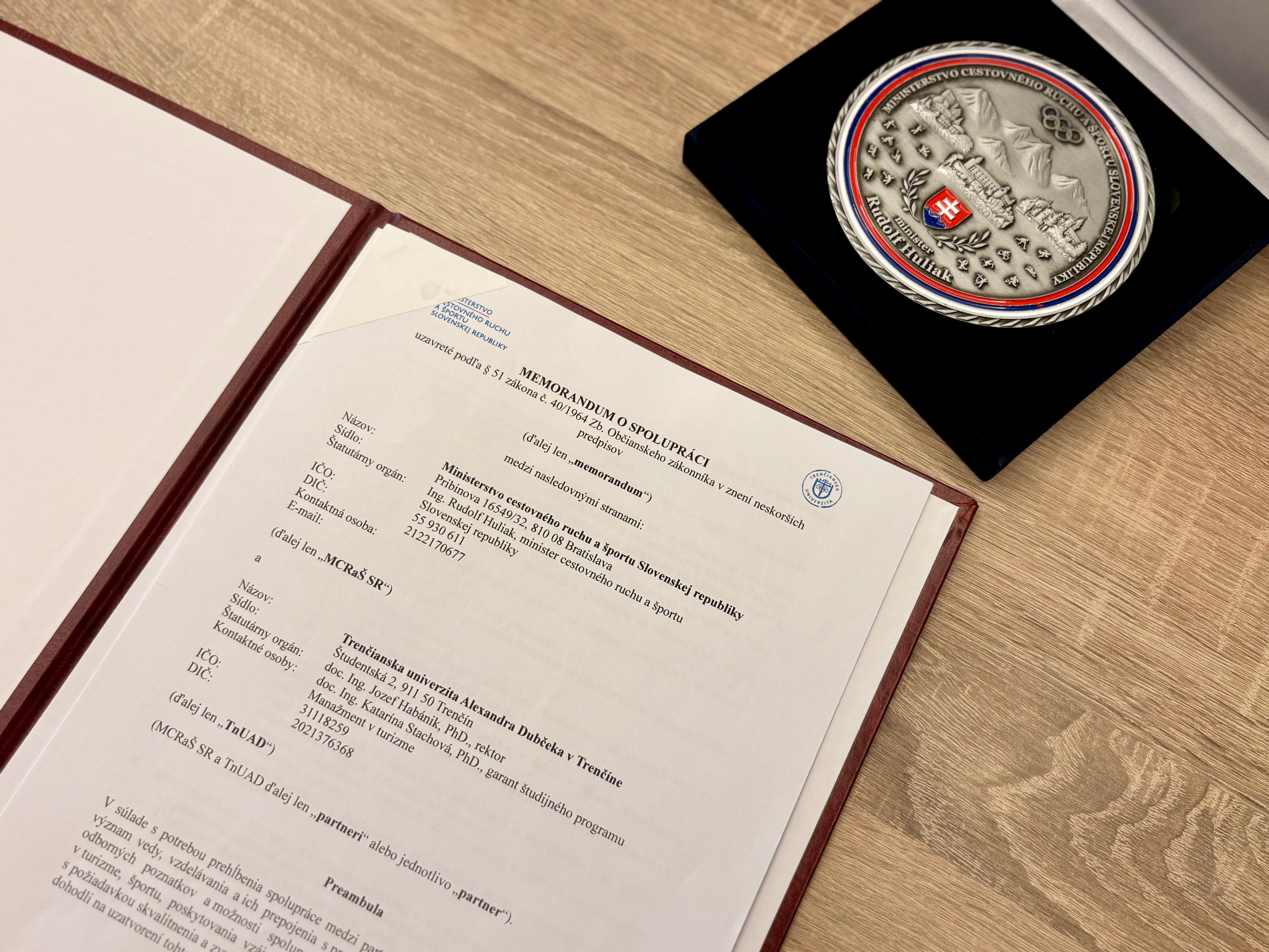 Rektor Trenčianskej univerzity Jozef Habánik a minister cestovného ruchu a športu SR Rudolf Huliak dnes podpísali memorandum o spolupráci. Dohodli sa v ňom na tvorbe moderných študijných programov, ktoré budú úzko prepojené s aktuálnymi potrebami praxe.
