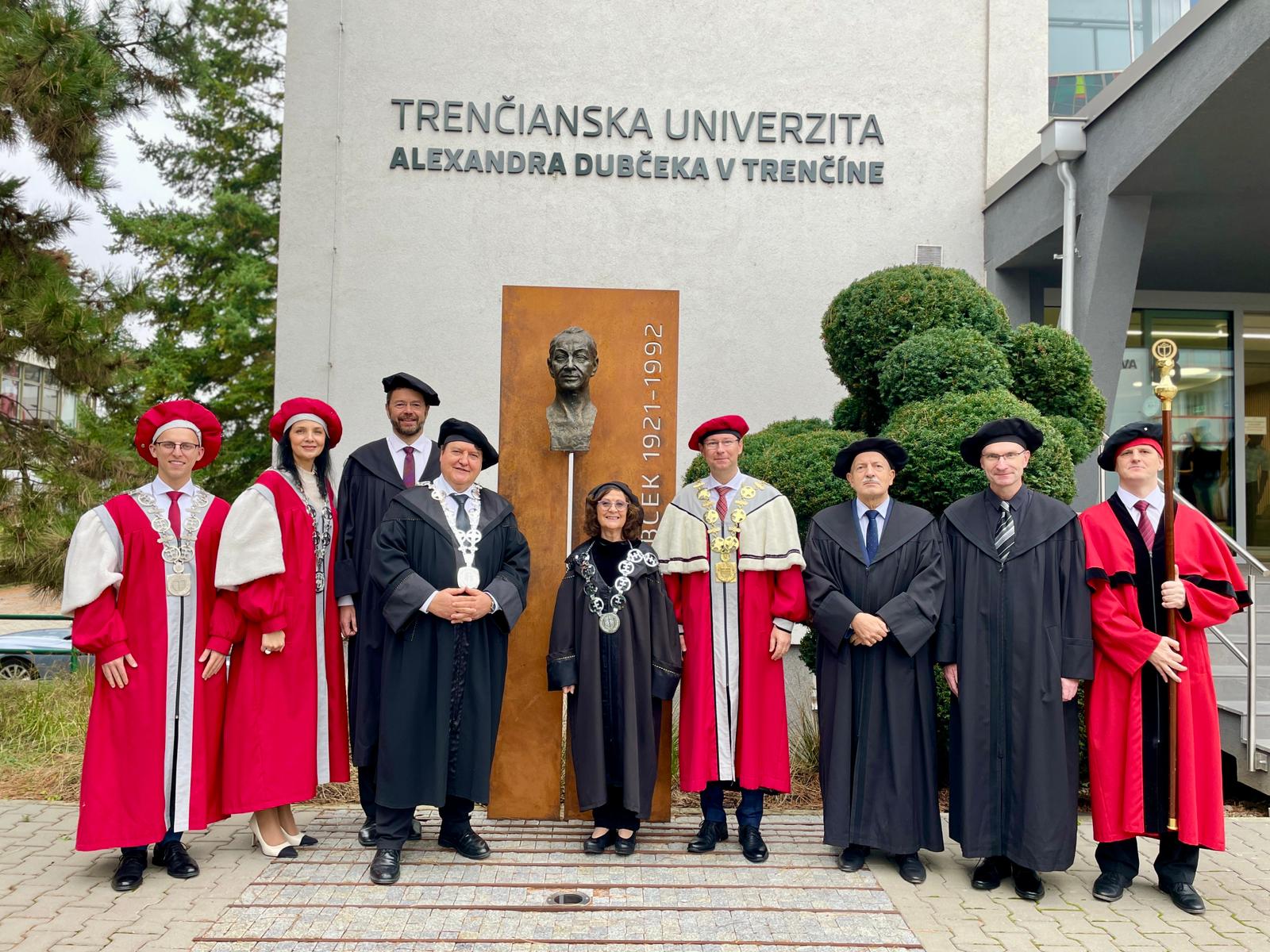 „Udelením čestných titulov doctor honoris causa vyjadrujeme hlboké uznanie dlhoročnej vedeckej a pedagogickej spolupráci oboch laureátov s našou univerzitou. Ich osobný prínos významne prispel k medzinárodnému renomé Centra FunGlass a k rozvoju materiálového výskumu na Slovensku,“ uviedol rektor Trenčianskej univerzity Jozef Habánik.