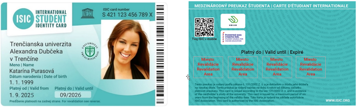 - preukaz ISIC dostane študent po absolvovaní zápisu do prvého ročníka, resp. po 01.09.2025,